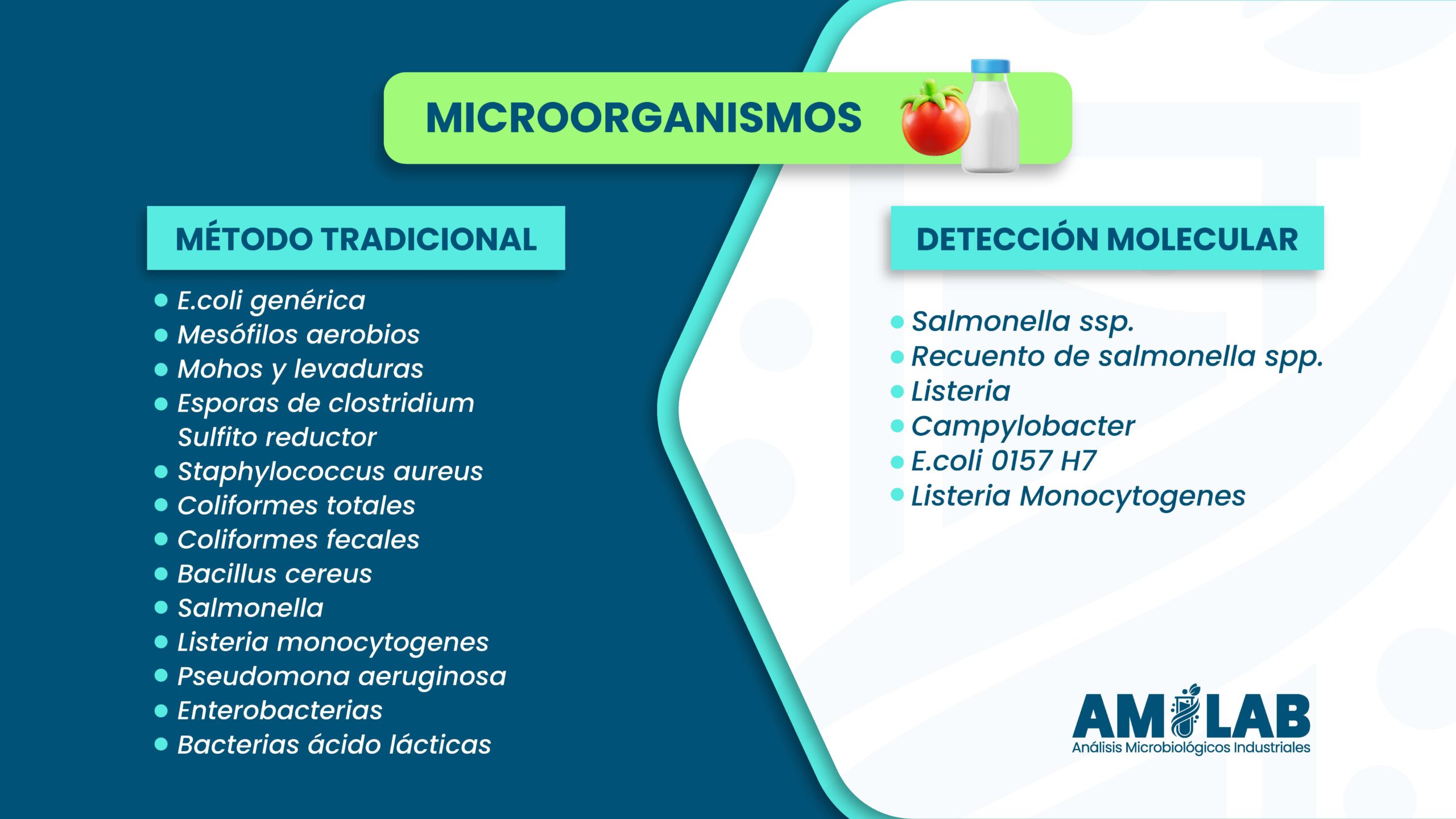 Presencia / ausencia: Alimentos para consumo humano (Productos cárnicos crudos, productos de panadería, productos lácteos, salsas)